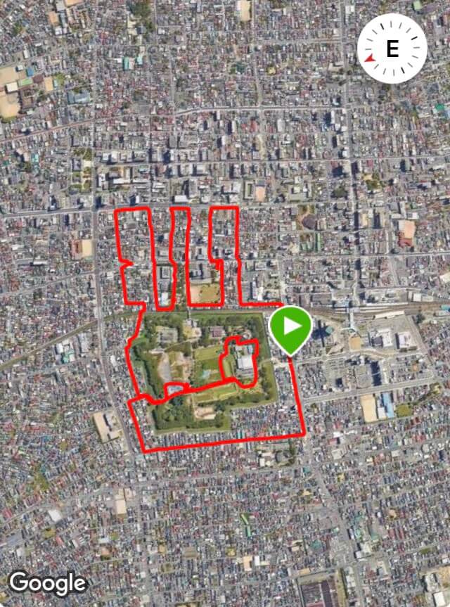 山形市の霞城公園をキャンバスに描くGPSアートは2019年に山形大学とIBMのチームがAIを使って新たに発見した『ナスカちゃん』です。参考URL:https://www.ibm.com/jp-ja/think/insights/datascience-and-ai-nazca